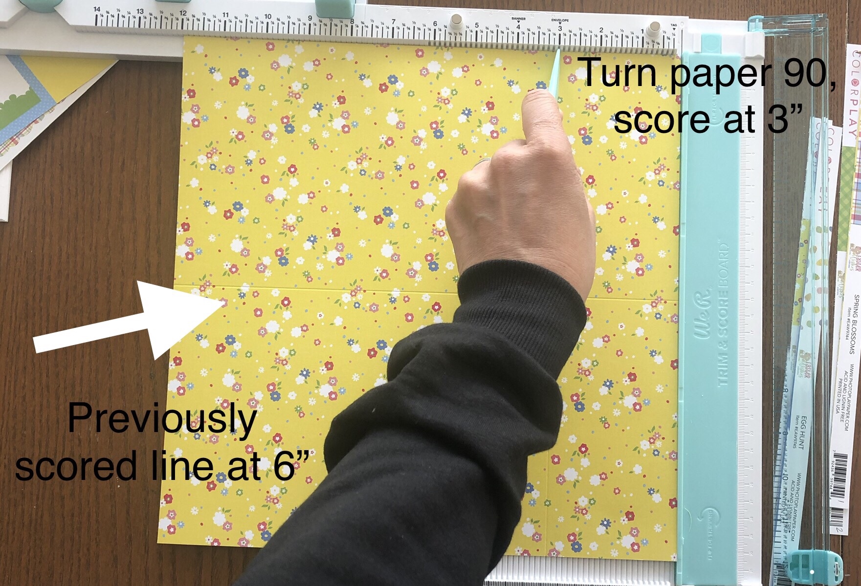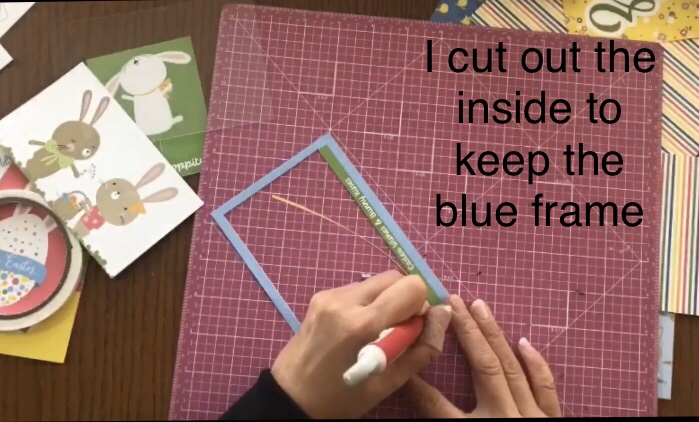 Now that the base of the mini-album is made, we need to prepare the inserts for the mini-album. I used the leftover paper to mat 4×6 photo cards, and cut up the journaling cards to use as embellishments for the mini-album.