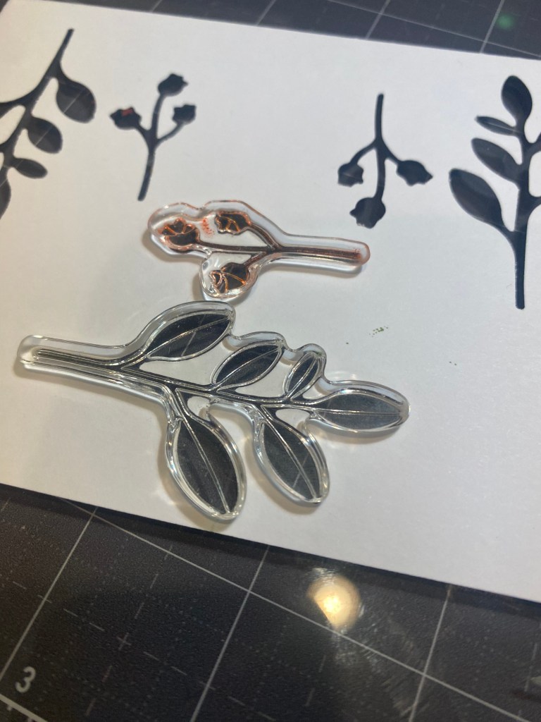 - Place the photopolymer stamps (see-through) in place where it was punched out.